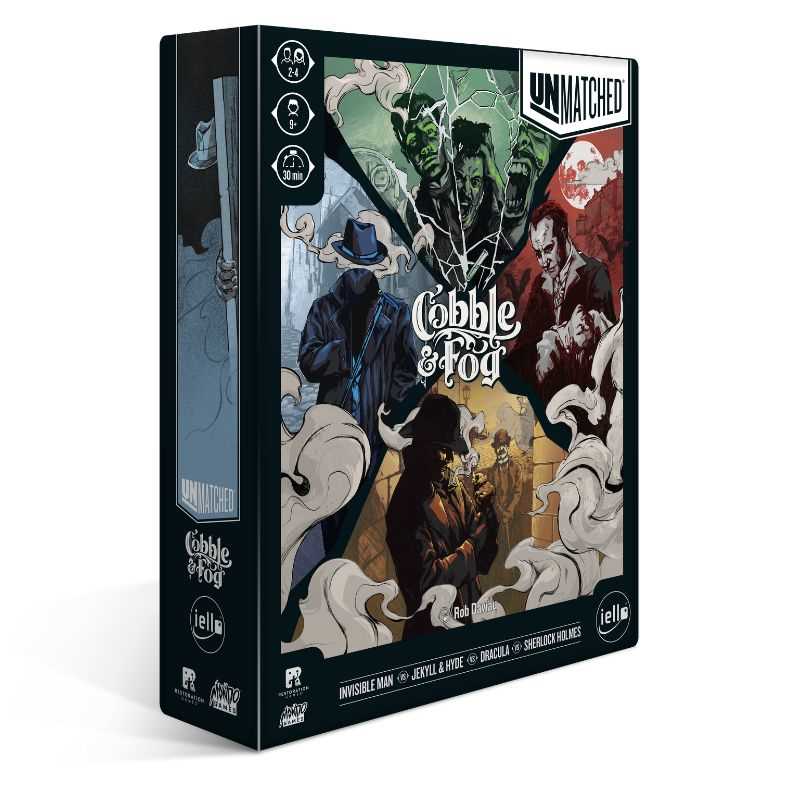 In battle, there are no equals… Unmatched returns with Cobble and Fog, featuring four brand new heroes: Sherlock Holmes, Jekyll and Hyde, The Invisible Man, and Dracula! Each character has a unique deck of cards that fit their fighting style and designed to their legendary abilities.